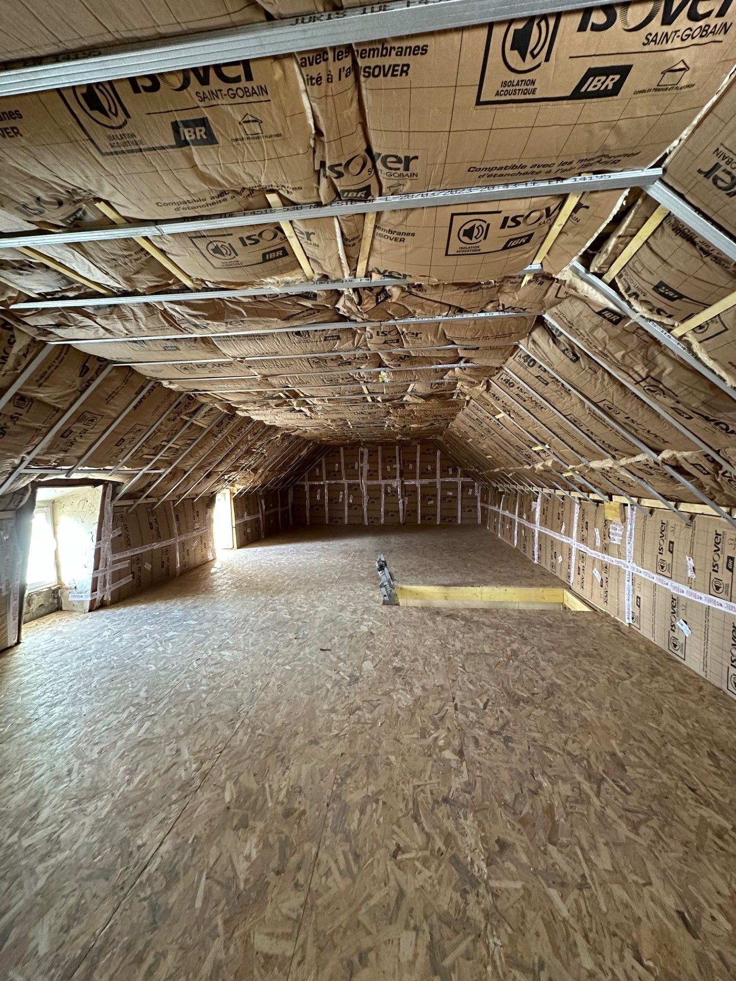 Nous rénovons aussi votre charpente et nous occupons de l'isolation de votre maison : plaques de plâtre, isolation des combles...